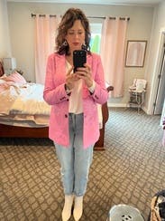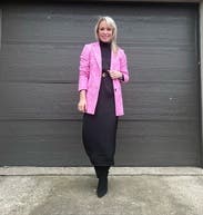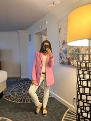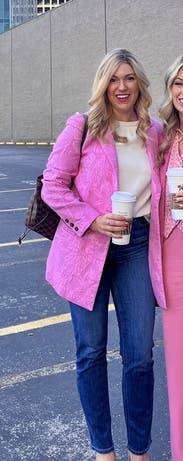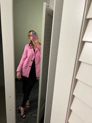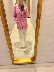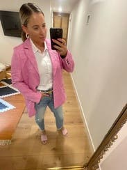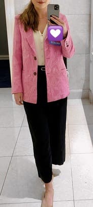 Loved the pink blazer, it was a gorgeous pop of color. Wore to the office a few times with black jeans and knee high boots, got so many compliments about the color!!