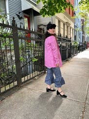 Loved this pop of pink that stood out and made a fun statement at the Barry Manilow show - copacabana style! It’s a great color and I got lots of compliments. For size - based on reviews, I ordered the XS and it fit a bit big, but it had a good, slightly oversized look. I think if I ordered it again, I would choose an XXS and had a more fitted look. For reference, I’m 5’2, 117lbs. Super glad I did not order the S - it would have been huge on me. All in all, I really loved wearing this!