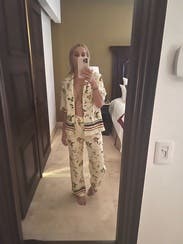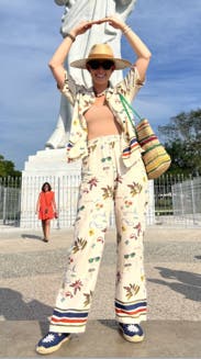 Rented as a set, not sure I would like the top by itself. Lightweight, easy to pack and wear, did need a bit of a steam after unfolding. Super cute pattern, loved the bold stripes. My husband thought it looked like pajamas when I wore it buttoned so here is the spicy version ;)