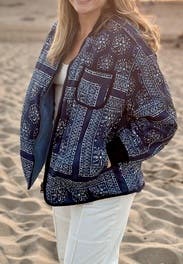 Brought this on a trip to Greece in March with warmer spring days and cooler evenings. Lightweight, transitional jacket and runs pretty true to size. Got tons of compliments on the pattern and easy to pack in your suitcase since the louder pattern side doesn’t show wrinkles