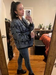 I am so tempted to purchase. I got so many compliments and it feels like you’re wearing a blanket. I’m usually a small, but I got a medium. I should have gone with the small!