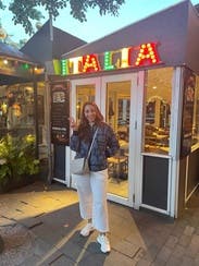 This was my everyday jacket while I had it. Wore it on both sides frequently, I was actually surprised by how it went with everything. Particularly liked it over an oversized chambray shirt, denim on denim. I'm in my second trimester and it fit perfectly over my (small) bump. Also decently warm, I wore it in 50-60 degrees over a light long sleeve shirt. Would definitely rent again.