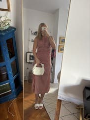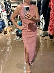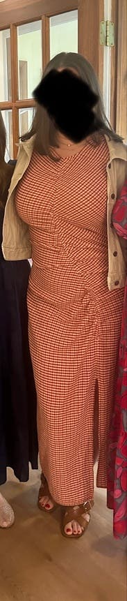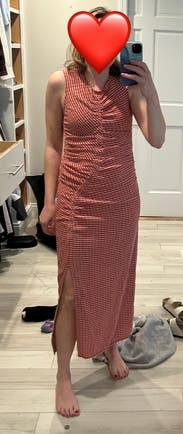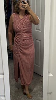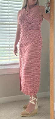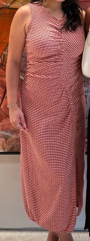 This was a creative take on gingham and I found it visually interesting but not that flattering on. I added a belt but still didn't feel like it looked amazing. It was comfortable on a really hot day but I don't see myself renting again.