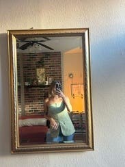 I had to safety pin the back, I definitely should have sized down probably 2x. It’s so cute though! The cut and material are tailored nicely.