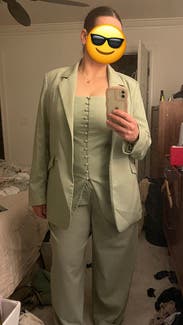 Wore to a wedding welcome party with the matching trousers and then again for a corporate meeting. So many compliments! I'm a pretty true size 6 and would have rather had the 4, it was quite large in the top!