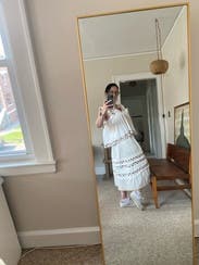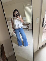 This top is just my vibe. I was afraid it would be too hot for Texas as the reviews talked about how much fabric there was. But I really loved it and loved that it was longer in the back. Would definitely rent again!