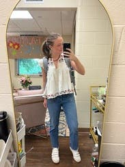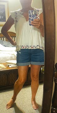 Beautiful top. Loved the embroidery but too roomy, was not flattering. The v cut is too low for modesty and wrinkles easily. Recommend sizing down.