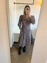 It’s a very pretty dress the smocking at the waisfe was kinda intense for me 5’5 body.