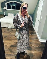I wore this dress out and about over the holidays and found it to be incredibly comfortable. I’m starting to think I have an unusual shape for dresses because I found the ruching to be incredibly unflattering, but throwing on a vest made it cute as can be. Maybe if you have a short torso you’ll want to plan a vest or blazer to break up the lines.