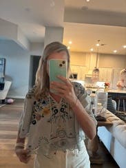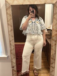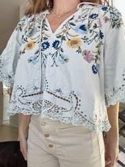 Love this top, it feels so special with all the embroidery. It is cropped so it looks great with dark wash high waisted jeans, a flowy skirt etc. Also a good coverup top. Loved it so much I made it mine.