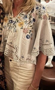 This top was fluttery and had beautiful embroidery, but was quite short. Worked for me with high waisted jeans. Needed a good bit or ironing and still looked a bit rumpled, but was enjoyable for a night out.