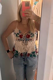 This ties all the way down the front and I don't love that. Maybe with the right bra or chest size it could work- but it didn't work well enough for me to wear out comfortably. Otherwise a cute top!