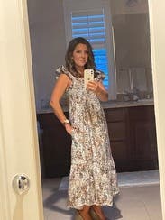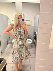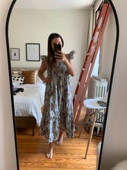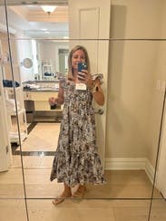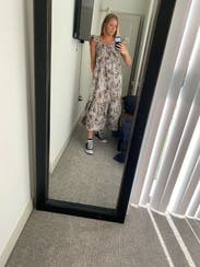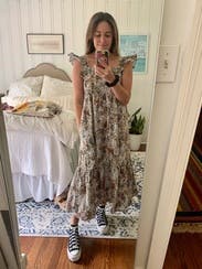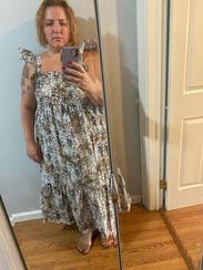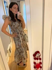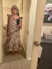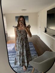 Dress was so pretty and comfortable. Felt dressed up but not overdressed for a bridal shower. The ruffle straps were a tad loose but with good posture they didn't slip down. Loved the dress so much I looked into purchasing it!