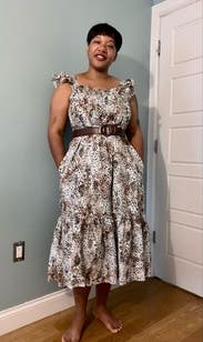 This ran large, but was still fun to wear!! I loved pairing it with the Mignonne Gavin bird earrings for a fun tropical feel. I wore this dress a lot, but would size down next time!