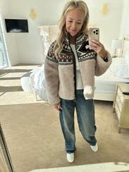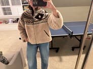I love this so much I don’t want to give it back. Very cozy, slightly boxy but true to size. The only complaint is that it’s very hard to zipper because the fuzzy fleece gets caught in the zipper. 10/10