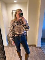 I was nervous the sleeves would be too much on this but they honestly don’t look too puffy or overkill. This top was so cute and easy!