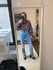 I loved this top so much! The sleeves were more of a quilted sweatshirt material (and puffy) and the torso had a more flowy, light material. Perfect for spring weather. Would definitely rent again in the future.