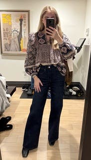 If I could swing the price tag, I would buy this shirt in a heartbeat. Elevates any look, gorgeous color and pattern. The arm length is perfect and it runs TTS.