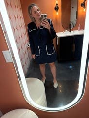 Such a fun dress. I loved the mini length. Others didn’t like that it said “SEA” on the back but it was honestly not noticeable at all and thought it was a cute touch. I got so many compliments on it as well.
