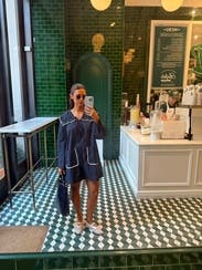 very short, so wore on top of a pair of white silk shorts. great detailing, very comfortable. kind of felt like madeline all day.