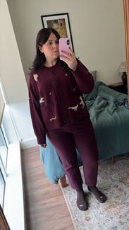 I loved the design and colors. Would have worn multiple times but I found it itchy. Got many compliments the one time I did wear. I’m not sure what size I am right now, maybe I should have gotten xs, but this did fit a little large.