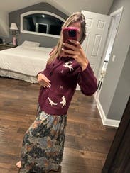 There is a reindeer patch on this sweater! It’s October. It’s an ugly Christmas sweater for sure!!!