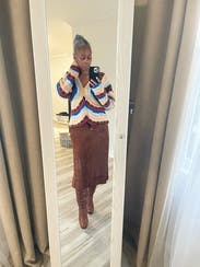 I love the silhouette and colors of this sweater but it is EXTREMELY thick and itchy. I wore it because I loved the vibe of it, but it wasn’t the most comfortable. It’s also kind of hard to style. It looks like a spring sweater, but it feels like something more appropriate for the winter.