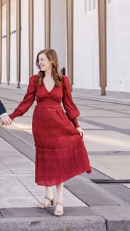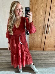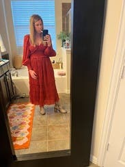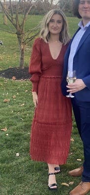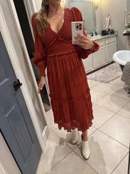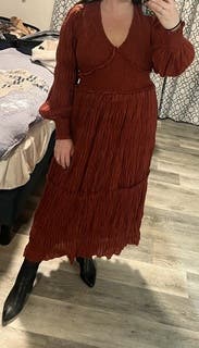 This dress is perfection! Wore it on my fall bachelorette in the mountains. It’s super flattering and comfortable. Will rent again