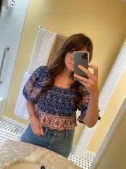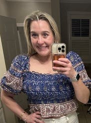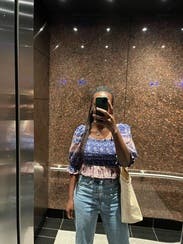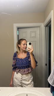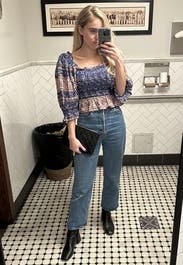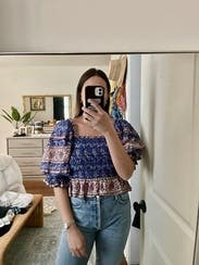I loved this top! Wish I would have kept it for sure. I got a ton of compliments, the pattern and sleeves were adorable. And it was a tiny bit cropped which was perfect with jeans.