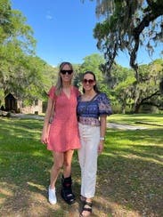 I liked this top- it was very breathable which was great for walking around in Charleston but it wasn't tight enough for no bra despite touching and the square neck made it tricky to wear a bra without showing. Also the sleeves would ride up and get uncomfortably tight on my biceps so I had to pull them down regularly