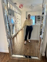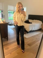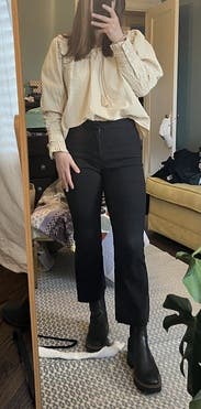 This is a very stylish cream shirt made. The details are wonderful—puffy sleeves, lovely cuffs, etc. It’s shorter than I expected, but was still very cute. Wore it tucked into a skirt. Received a ton of compliments.