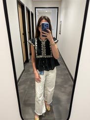 I threw this on and a hurry and it elevated my white jeans for a casual brunch. Cute and casual but not boring .