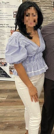 Perfect fit for a more petite frame. Love the ruffles & classic details! I wore it to a family dinner out in wine country styled with white jeans & pearls.