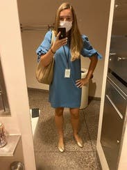 The fit, color, style of this dress are all amazing. Nice and light, yet conservatively enough for me to wear to work. Would def rent again!