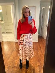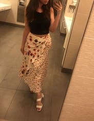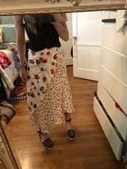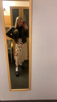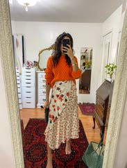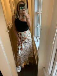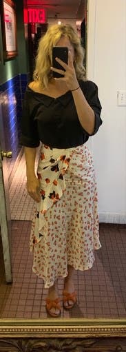 I'm in love with this floral midi skirt. I got endless compliments on it and will def rent again. It was perfect for a night out w dinner and drinks. I paired with a cropped black top, but would look great with a sweater for the winter. The fit was comfortable and true to size