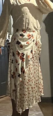 Had a hard time pairing a top with it , but it’s so unique & feminine - eclectic & chic!