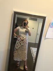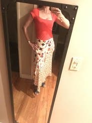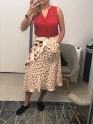I can't describe how much I loved this skirt. It fit perfectly and was so flattering. The print and fabric makes it look expensive, and it's perfect to pair with a casual top. I wore it to a group happy hour, on vacation at a vineyard, and then for a work event.