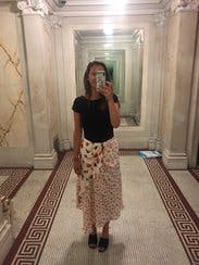I really wish I could have worn this skirt, but it was so big that it was falling off, even when I was standing still. It also wrinkled easily. It's a beautiful skirt, though, and it felt high quality.