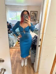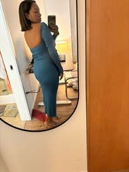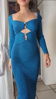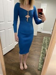 Wore to a Christmas work party. Dress is super flattering. I have broad shoulders, so it was slightly tight in the shoulders, but nothing that altered what the dress looked like on, more of a discomfort thing. The cutouts aren’t as drastic as they look in the pictures. Got lots of compliments!