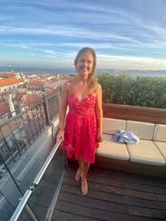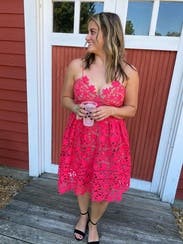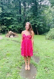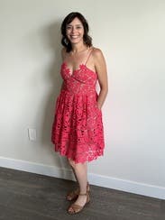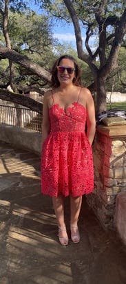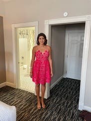I got so many compliments! It was the perfect dress for my graduation ceremony. The color is a more of a pinkish red than hot pink like the description. Don't pass on the this dress. I will 100% be renting again.