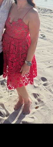 I would have never bought this. I would have tried it on and liked it but never buy it. BUT I WOULD HAVE REGRETTED IT. When I tell you I was stopped on the street for this dress. My boyfriend had to kung-fu people away with me. A little bit about the dress. The lace is so sexy. It’s heavy so it’s giving expensive through and through. It looks a little like it’s seethrough because the material is nude and the lace is red. I didn’t think I’d love it but I absolutely adore it.