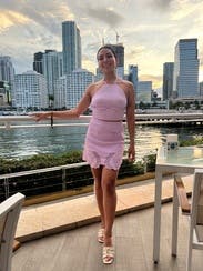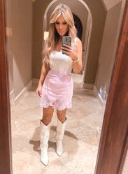 Definitely runs small… wish I would have gotten the matching top! The detail on the bottom of the skirt is adorable! It definitely is not forgiving and shows everything!