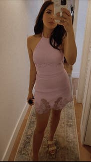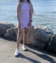 This was my first time renting Self-Portrait and Medium was the only size left, thank goodness because it fit great!! I did have to roll the skirt once because of where I wanted the skirt to hit (I'm 5'3 for reference) It's a beautiful light purple and well made! I would definitely recommend and would totally rent again!!