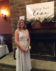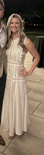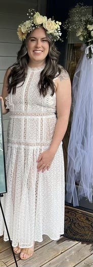 Amazing dress! A little tight around the waist but the lace and sleeve details more than makes up for it. Was perfect for an April wedding in the desert (hot during the day and a little cold at night)