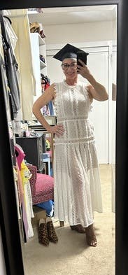 I wore this to my nursing school graduation. Rented the 6 & 8. The 8 fit perfectly. So many compliments. It also looked great under my gown as I walked across the stage.