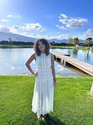 Side note - 10R=6US This dress is beautiful and it looks pretty fancy due to the length, but I dressed it down with simple shoes and a naked face, chignon bun for a casual dinner out...so many compliments just in the 2 hrs at the restaurant. Seriously considering purchasing. Did I mention it has pockets and just enough give in the tummy that I could eat pasta & drink a bubbly beverage without feeling uncomfortable at the end of the night?! I didn't want to take it off!