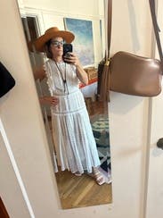 I got this dress to take on a trip to a dude ranch for my 40th birthday, and I kept it through multiple shipments. I probably should just buy it, but I love getting to rent clothes and not having to accumulate and maintain. Still on the fence about possibly purchasing in the future. Wore this many many times throughout the summer and fall. The brand is known for being small, and I feel the stress was similar. The waist is definitely tight, so I don't recommend it for any event where you're going to consume copious amounts of food lol