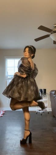 This is the third Selkie dress I’ve rented, this time for a drag show, I loved it so much! The bodice is slightly see-through, I used breast tape to avoid a bra showing and it worked out great. I always get so so so many compliments in the puff dresses, definitely worth a rental.