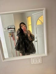 The fit was basically perfect, though the fabric is polyester and the texture was a bit crunchy. Short, floofy, and flattering!