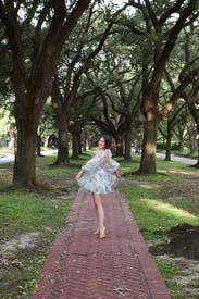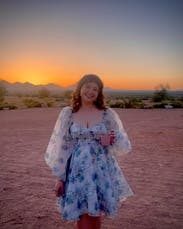 You can’t help but feel good wearing this magical dress. I took a risk ordering the XXS - it was the only size available. I crossed my fingers that I could squeeze in, but Selkie is not kidding around, their XXS is teeny tiny! There is no stretch, and I could not zip it fully. An XS likely would have fit. Luckily, my friend and I just rented our dresses for a fun photoshoot, so I still got to wear it and we fixed the back in the pictures!